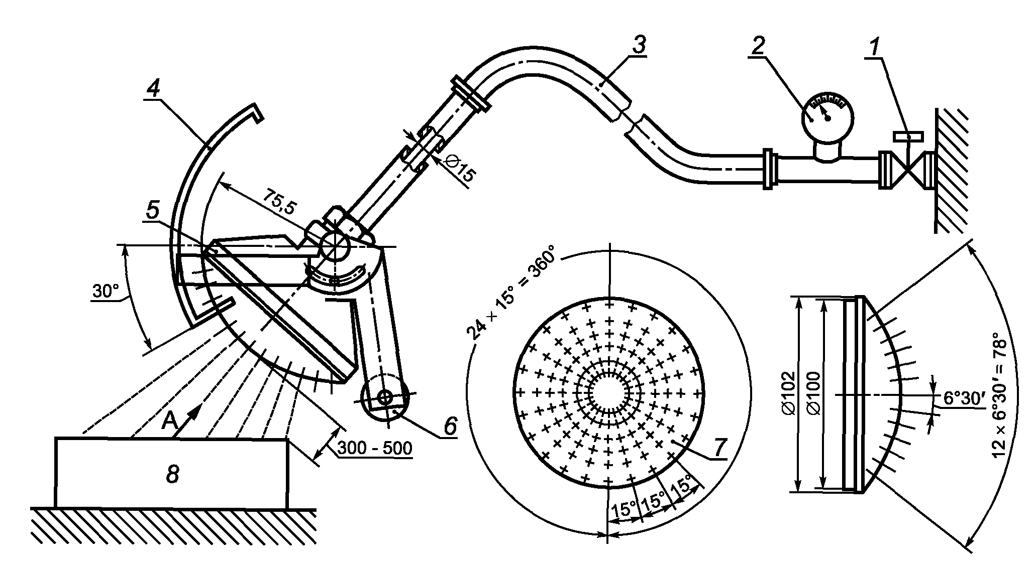 1 - кран; 2 - манометр; 3 - шланг; 4 - подвижный экран