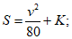 K - коэффициент коррекции скорости, который используется в формуле, если максимальная скорость машины превышает 32 км/ч [K = 0,1(32 - v)].