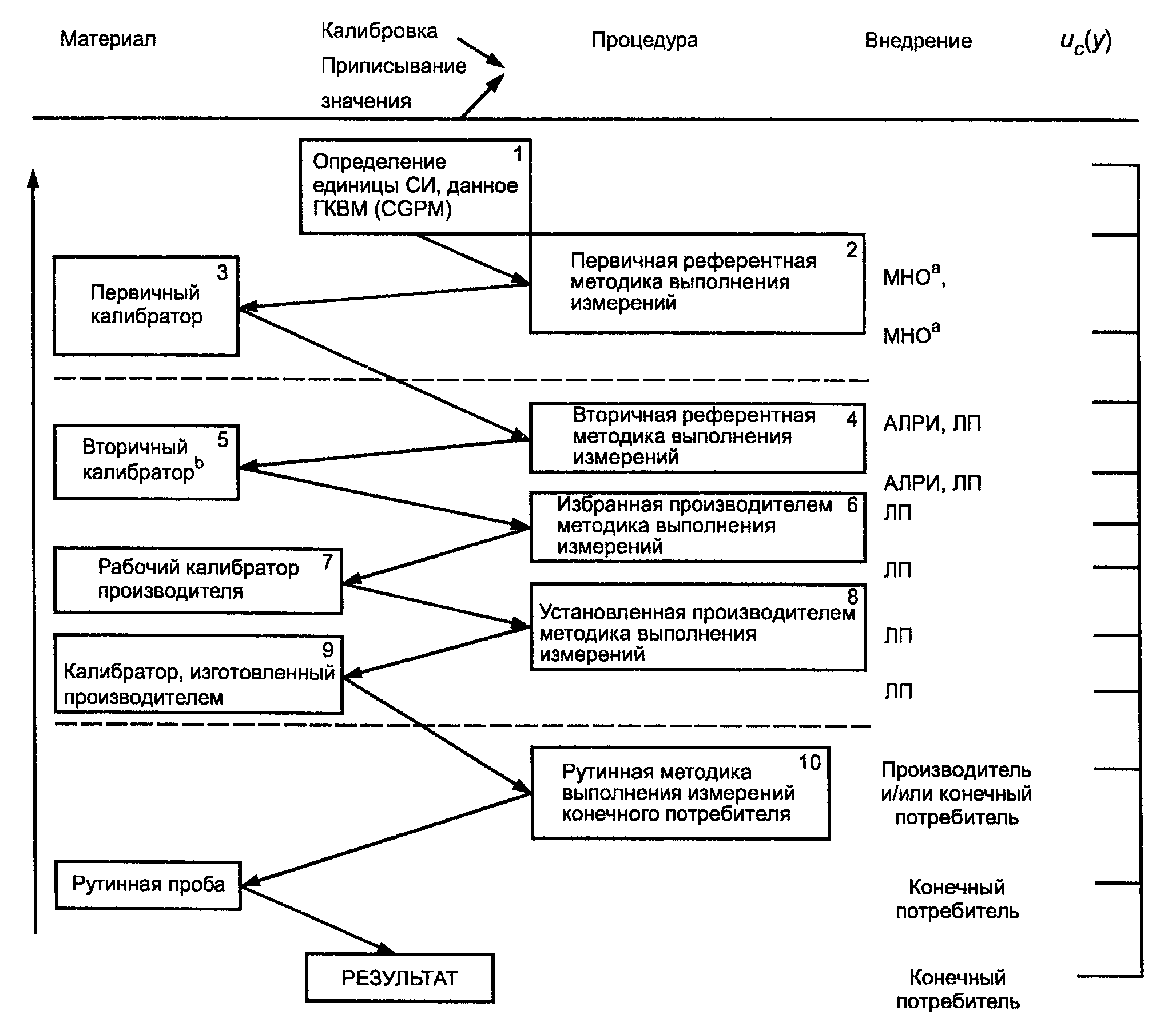В настоящем стандарте описана иерархия калибраторов и методик выполнения измерений для измерения концентрации каталитической активности ферментов (далее - каталитическая концентрация). Для измерений ферментов производная согласованная единица СИ "моль на секунду-кубический метр" или "катал на кубический метр" (согласно резолюции Генеральной конференции по весам и мерам) является верхним уровнем иерархии с первичной референтной методикой выполнения измерений, до которой должны быть, по возможности, прослежены методики выполнения измерений, калибраторы и контрольные материалы низшего уровня.