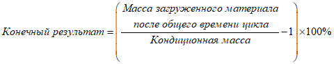 C.1.6 Сразу по истечении предварительного времени цикла останавливают сушилку, извлекают загруженный материал и взвешивают его. Вычисляют количество удаленной влаги. Используя данное значение и предварительное время цикла, рассчитывают "интенсивность сушки" b, которая находится путем деления массы удаленной влаги на время цикла.