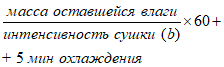 a, рассчитывают предварительное время цикла сушки, которое находится путем деления массы влаги на интенсивность сушки.
