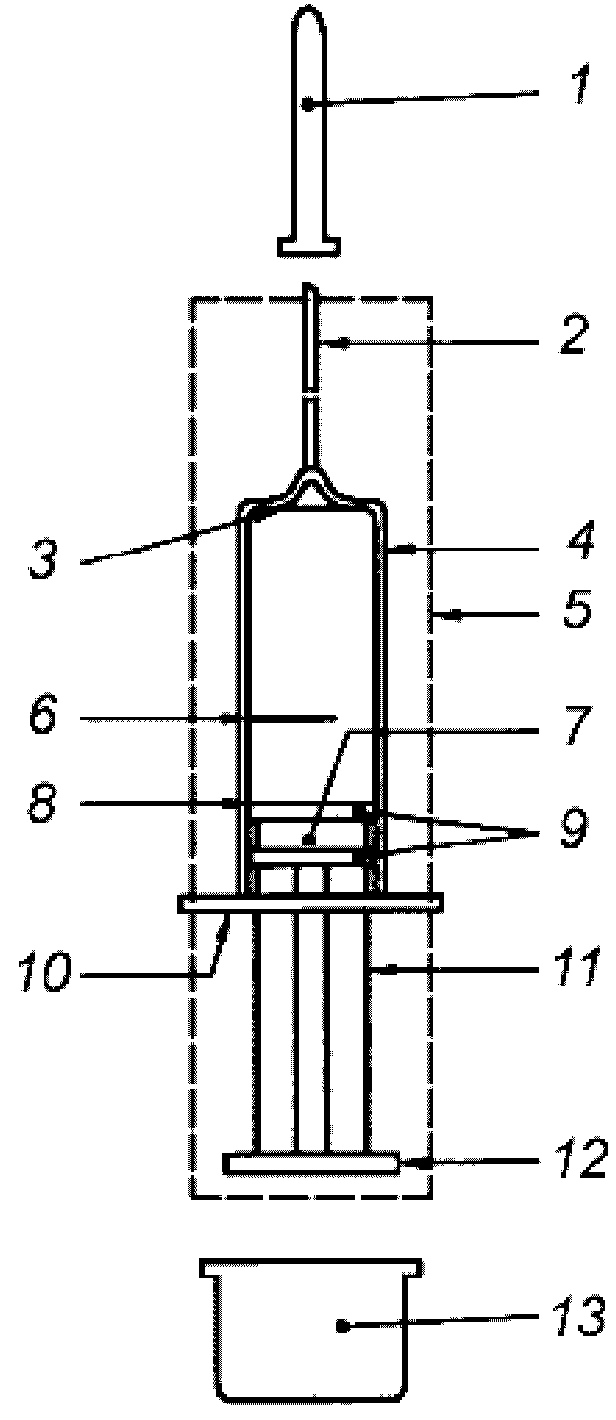 Примечание. Рисунок предназначен для того, чтобы показать детали шприца, автоматически приходящего в негодность после применения.