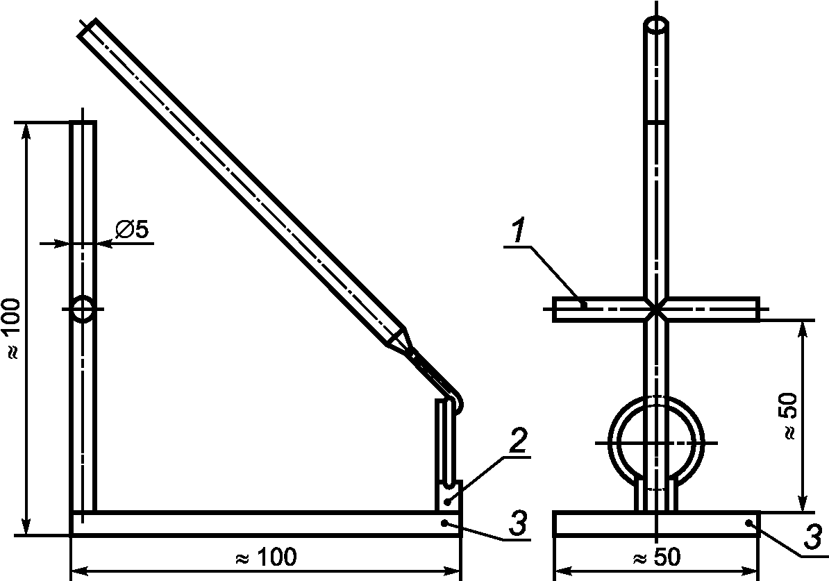 Стойка устройства состоит из стержня диаметром 5 мм с горизонтальной перекладиной в своей средней части. Опора 2 имеет углубление, в которое устанавливают головку зеркала.