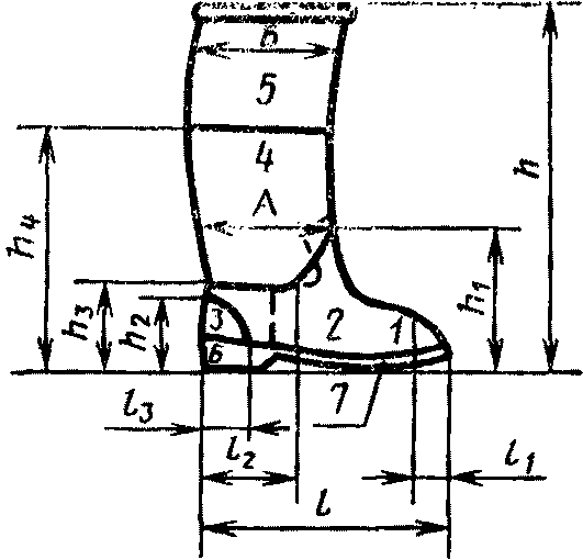 для мужских сапог: h1 = 42%h; h2 = 20%h;