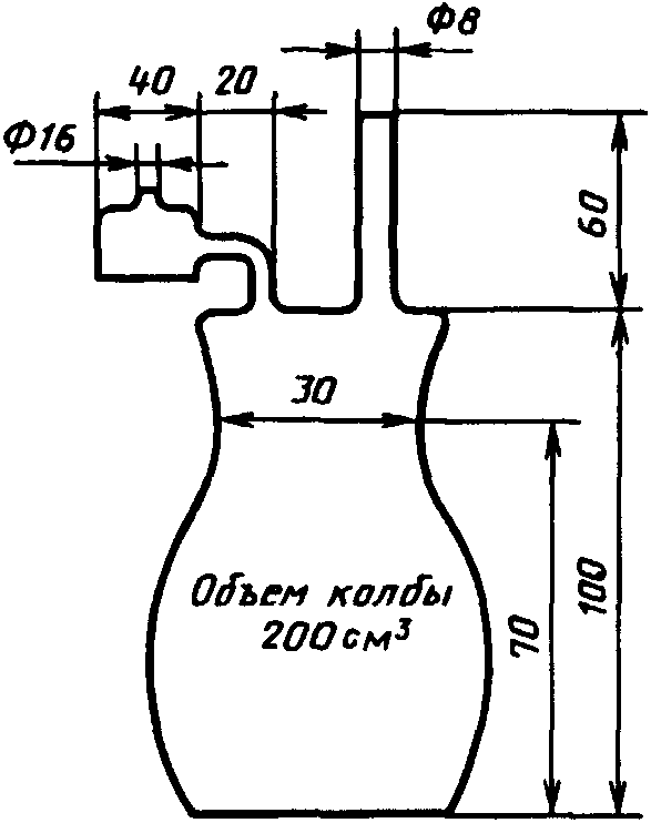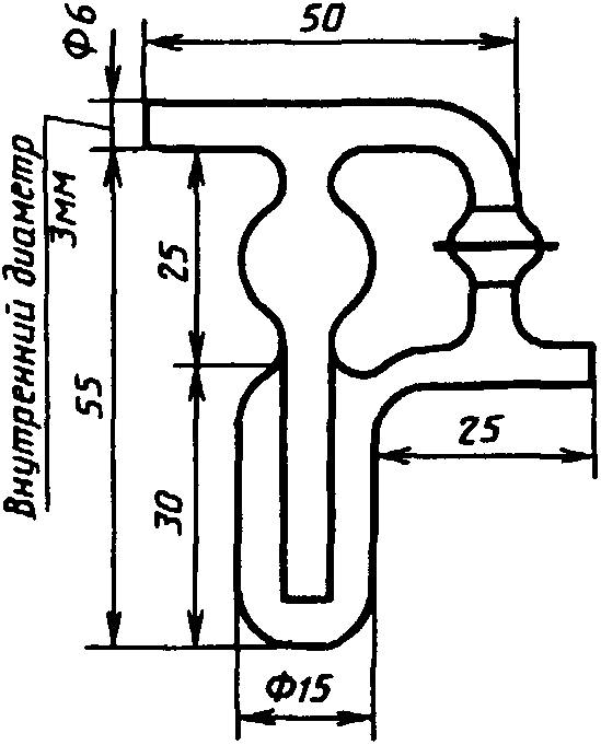 (черт. 1) наполняют дистиллированной водой, склянку Дрекселя (черт. 2) - серной кислотой в таком количестве, чтобы конец полого шарика был погружен в кислоту на 4 - 5 мм.