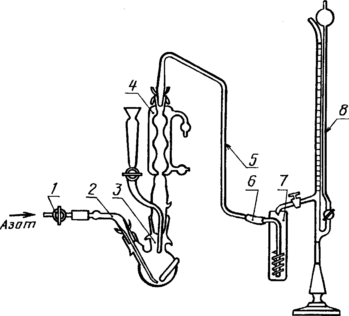 Баллон с азотом присоединяют через вентиль точной регулировки или зажимной винт, а газометр через кран к стеклянному штуцеру трубкой из полиэтилена или бессернистой резины. Регулируют скорость подачи азота до 1 - 2 пузырьков в секунду. Ставят колбу на колбонагреватель, который может быть предварительно нагрет, и проводят восстановление.