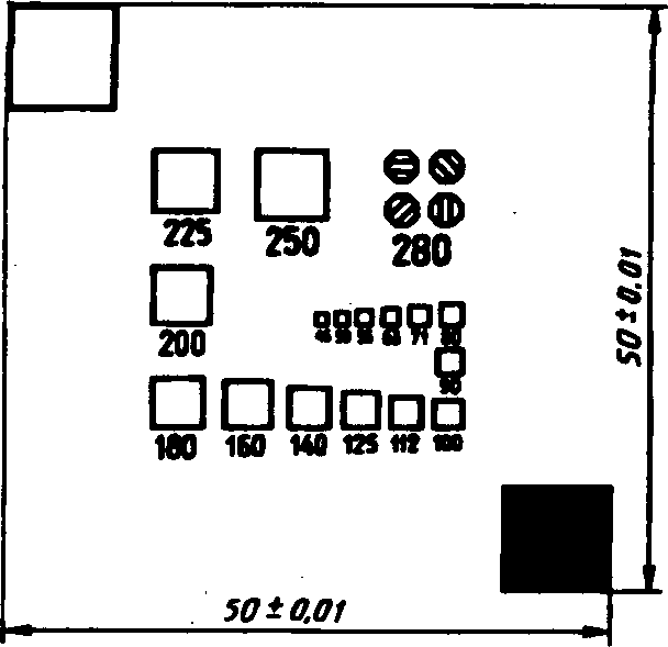 4.4 Тест-объект содержит темный и светлый квадраты, предназначенные для контроля оптических плотностей на тест-объекте. Длина стороны квадрата 10 мм.