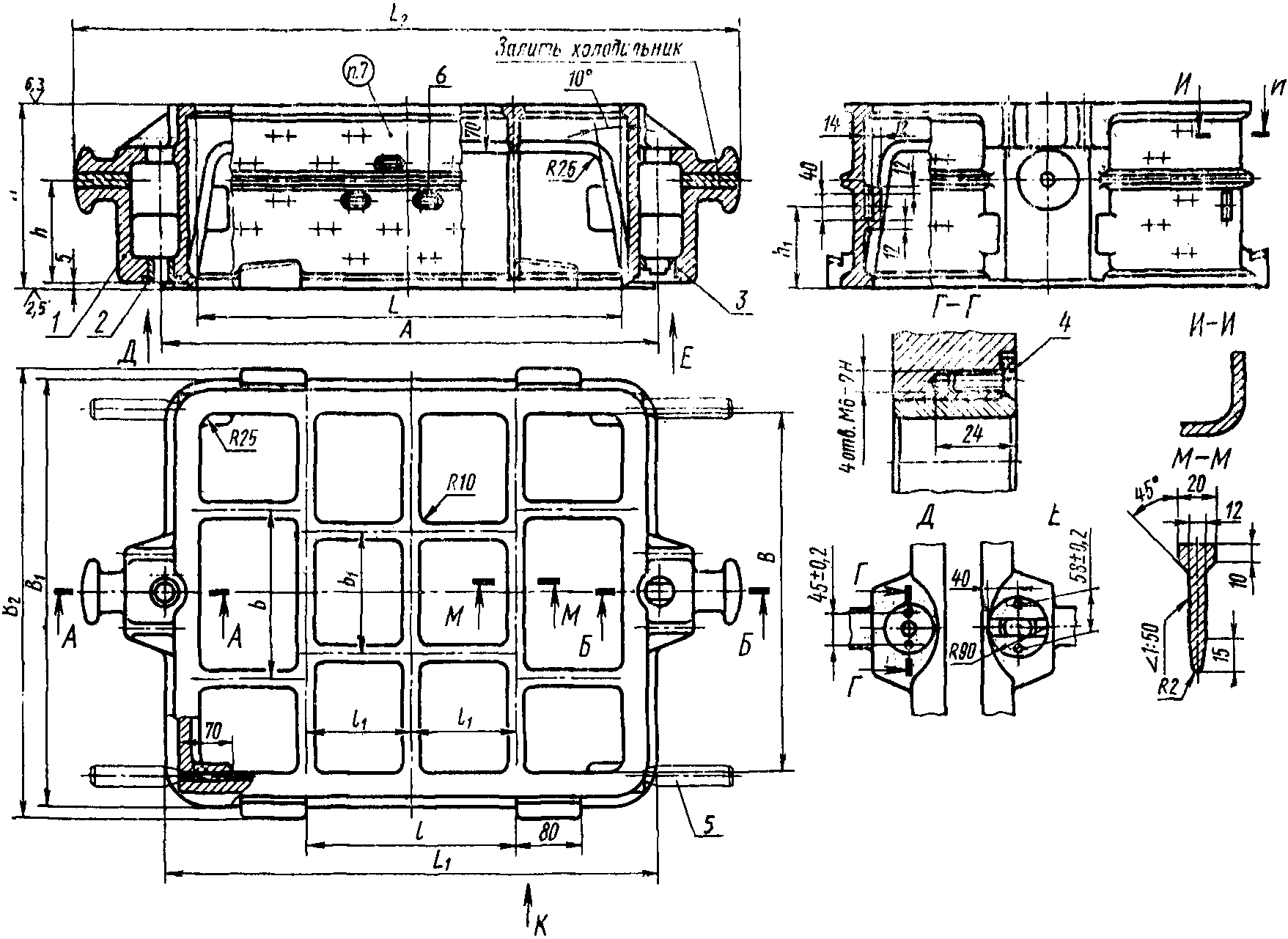 4. В местах сопряжения ребер, цапф и платиков со стенками опок вентиляционные отверстия не делать.