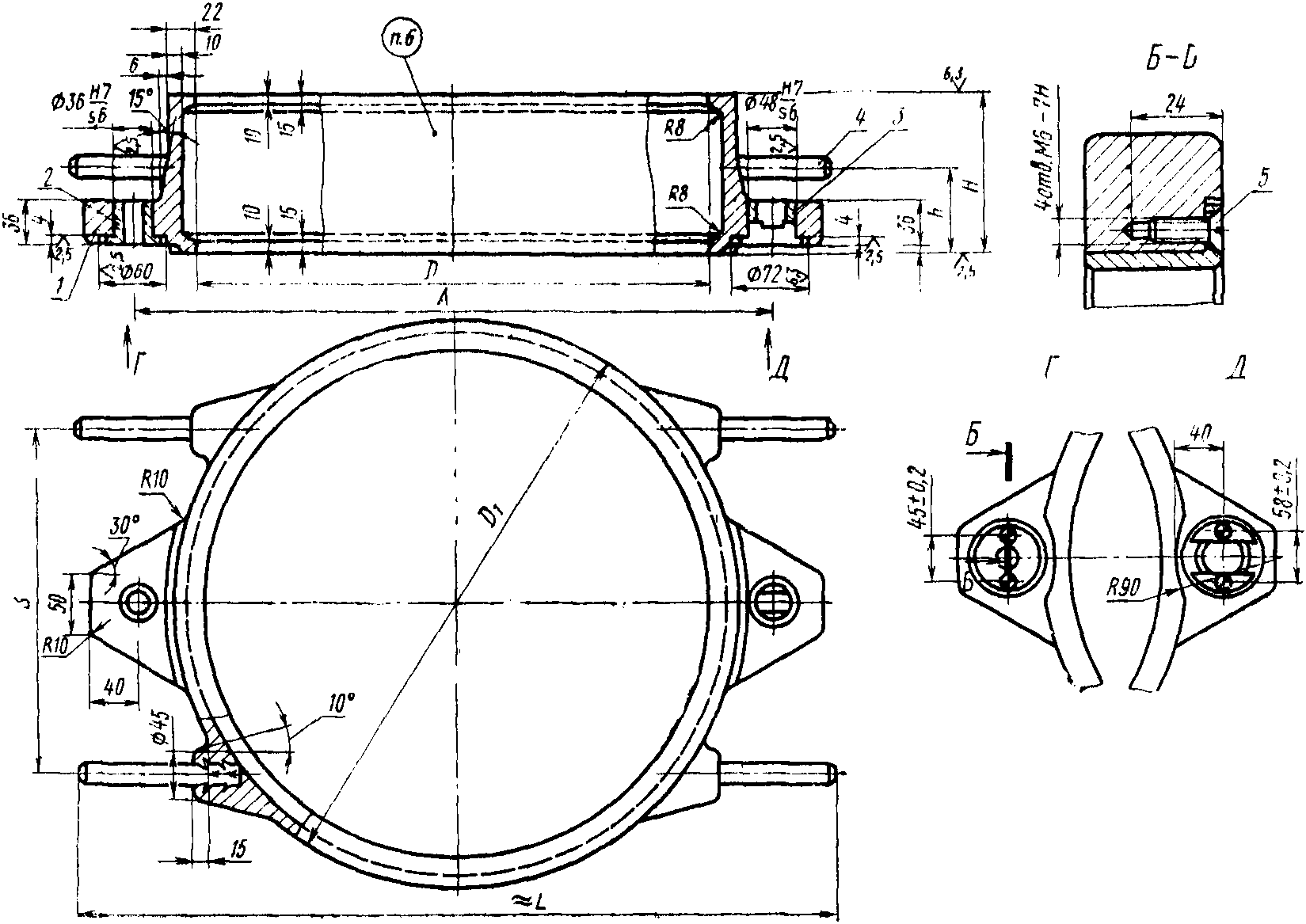 1 - корпус; 2 - центрирующая втулка 0290-2621 по ГОСТ 15019