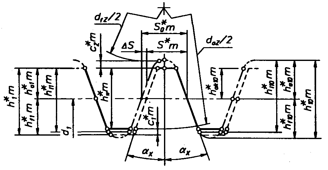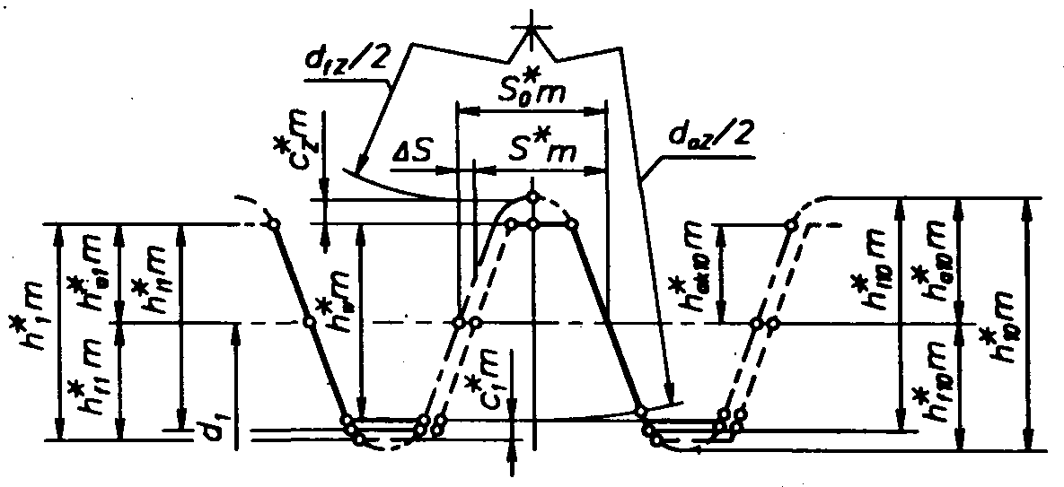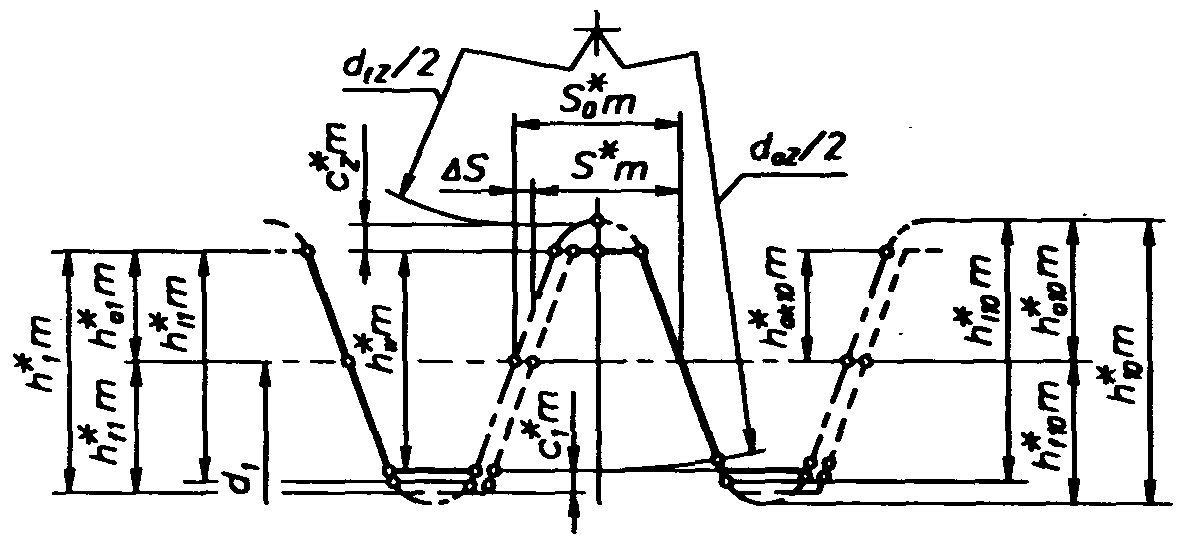 4.1. Форма и размеры витков исходного червяка и исходного производящего червяка и радиальные зазоры червячной передачи в осевом сечении этих червяков, содержащем межосевую линию червячной передачи, должны соответствовать: