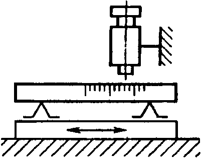 Индикатором, закрепленным на переднем конце шпинделя, касаются рабочей поверхности линейки.