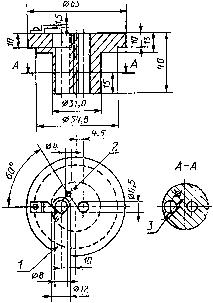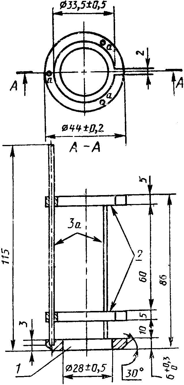 6.6. Пробка (черт. 5) из маслостойкого материала, подогнанная к измерительному сосуду и поддерживающему кольцу. Пробка должна иметь три отверстия: для пипетки