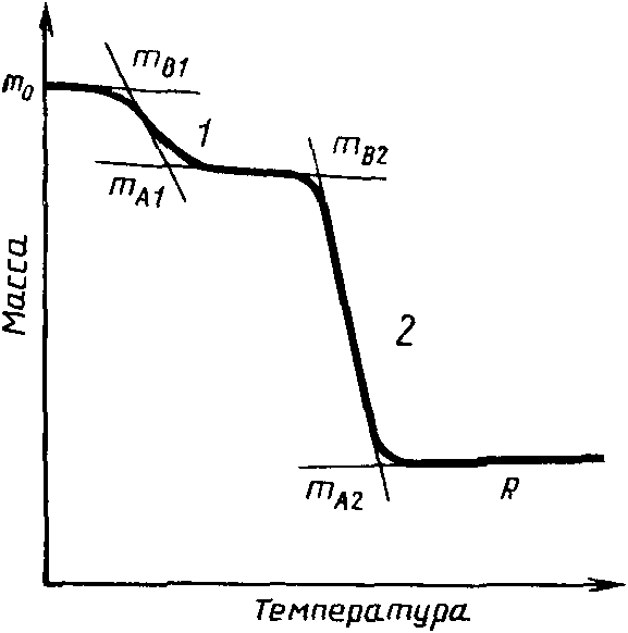 На черт. 2 приведена кривая для двухступенчатой потери массы.