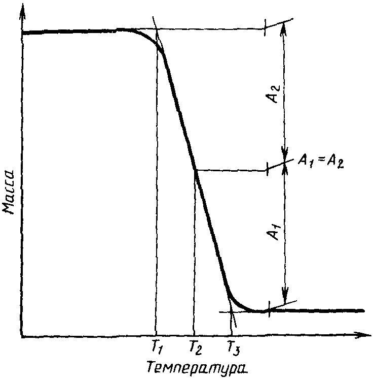 - это температура, соответствующая пересечению продолжаемой квазигоризонтальной линии ступени разложения с касательной в точке перегиба.