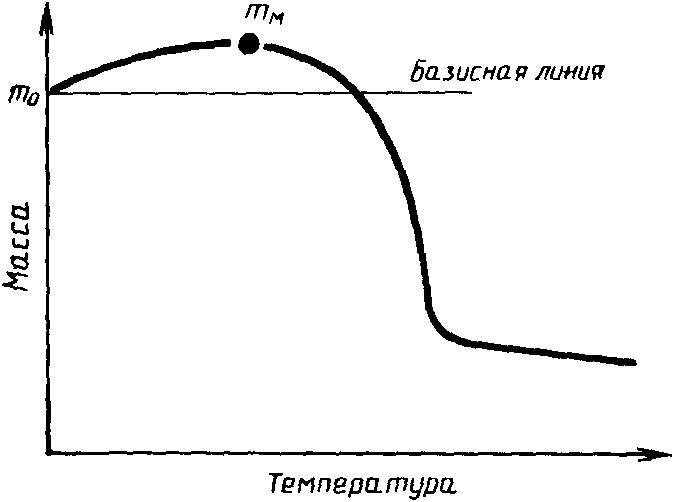 Регистрируют изменение массы образца как функцию от температуры при нагревании образца с постоянной скоростью. Данные термогравиметрического анализа откладываются на оси ординат Y, а температура - на оси абсцисс X.