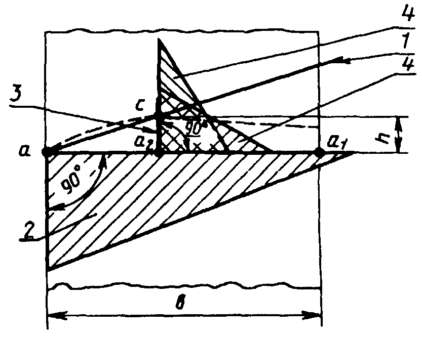 2.4.4.1. Треугольник на мехе располагают так, чтобы один катет совпал с кромкой меха, а вершина прямого угла находилась в точке a.