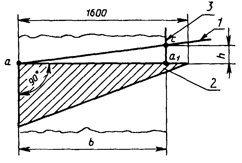 1.4. Прямоугольный треугольник с длиной одного из катетов 1600 мм по нормативно-технической документации (первый треугольник).