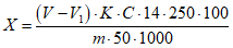 K - коэффициент поправки для молярной концентрации раствора гидроокиси натрия;