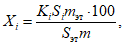 Массовую долю каждой примеси (Xi) в процентах вычисляют по формуле