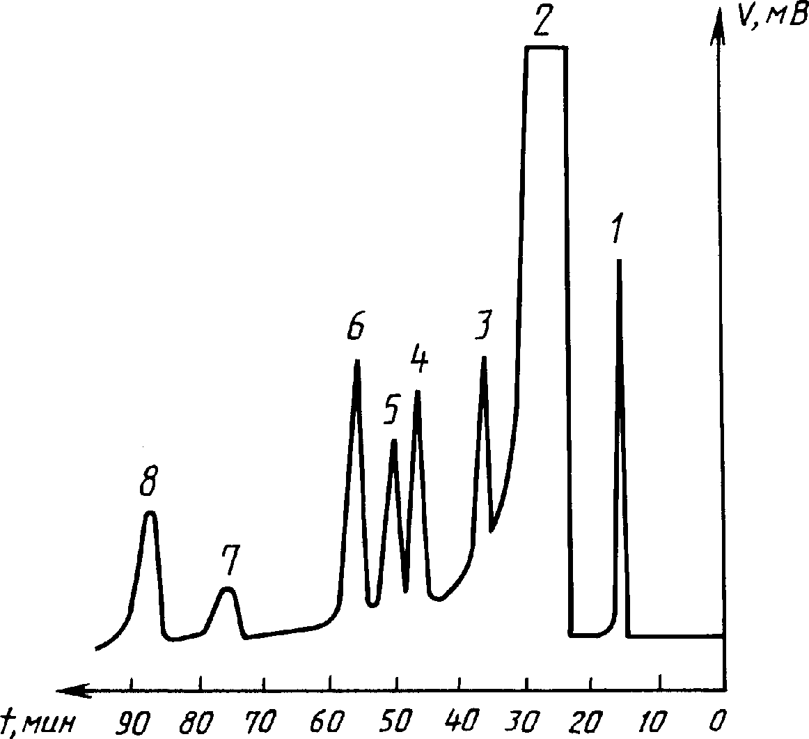 Типовая хроматограмма четыреххлористого углерода приведена на черт. 2.