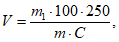 Объем раствора испытуемого красителя (V) в миллилитрах вычисляют по формуле