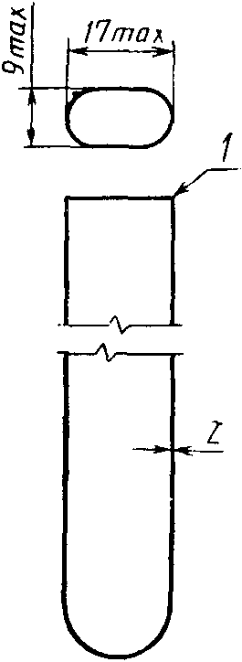 1 - оплавлено огнем; 2 - толщина от 0,75 до 1,05 мм