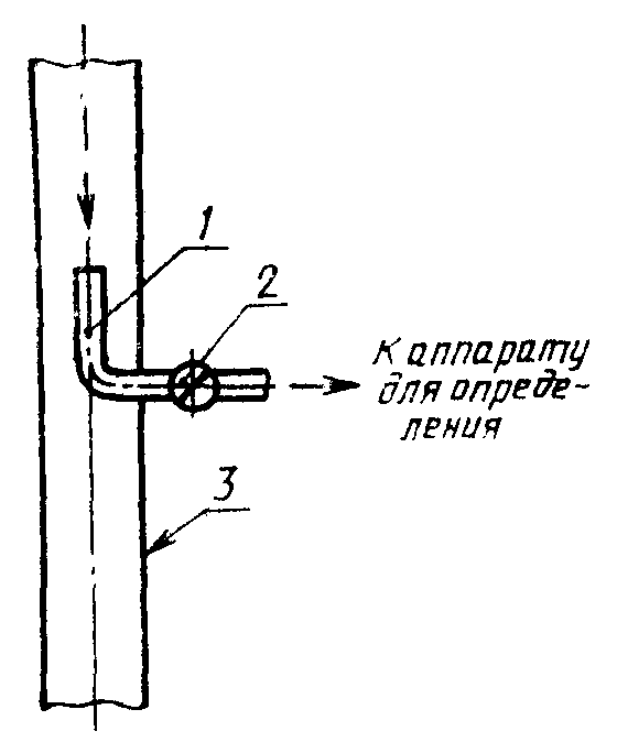 1 - место отбора проб; 2 - клапан (V1); 3 - подающая