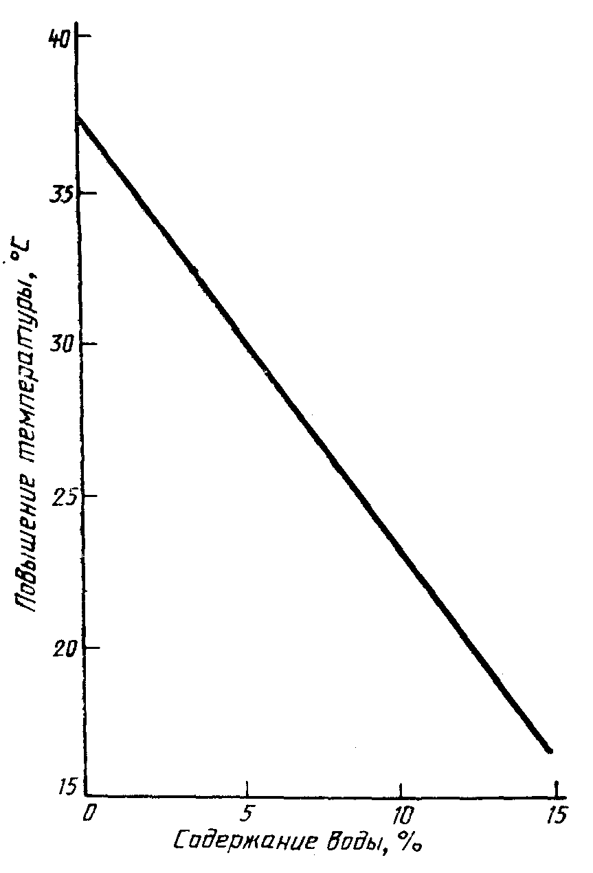 черт. 7, определяют содержимое воды в продукте (в процентах по массе) в соответствии с повышением температуры, наблюдаемым в процессе растворения.