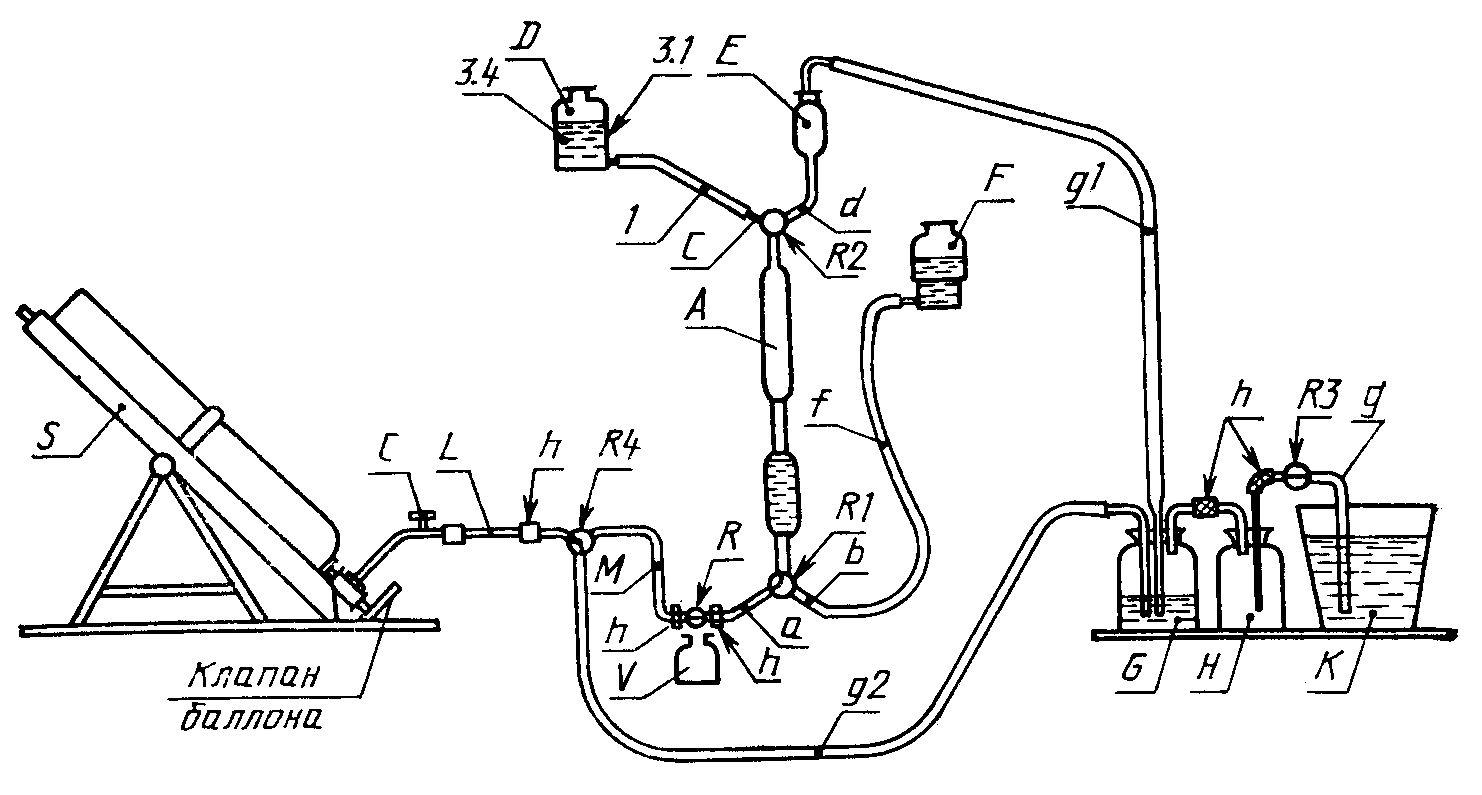 Чтобы убедиться в герметичности собранного аппарата, проводят тщательную регулировку соответствующих резьбовых соединений. Масса каждой заполненной трубки, взвешенной отдельно, не должна превышать 100 г. После каждого взвешивания трубки возвращают на прежнее место так, чтобы обеспечить пропускание газа в той же последовательности;