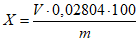где V - объем раствора соляной кислоты молярной концентрации точно 0,1 моль/дм3, израсходованный на титрование в присутствии метилового оранжевого, см3;