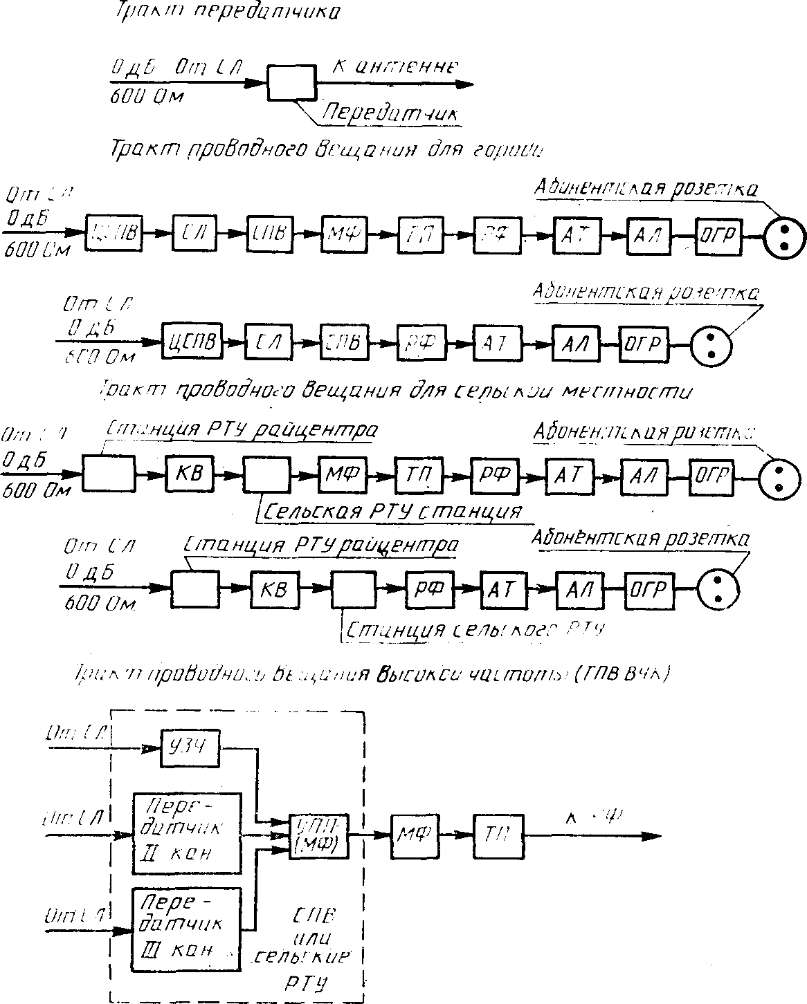 1.1. Электрический канал звукового вещания и передачи звуковых сигналов телевидения (в дальнейшем звукового вещания) представляет собой совокупность технических средств, при помощи которых электрические сигналы звукового вещания передаются с выхода микрофона или канала воспроизведения магнитофона до антенны передатчика или абонентской розетки тракта проводного вещания