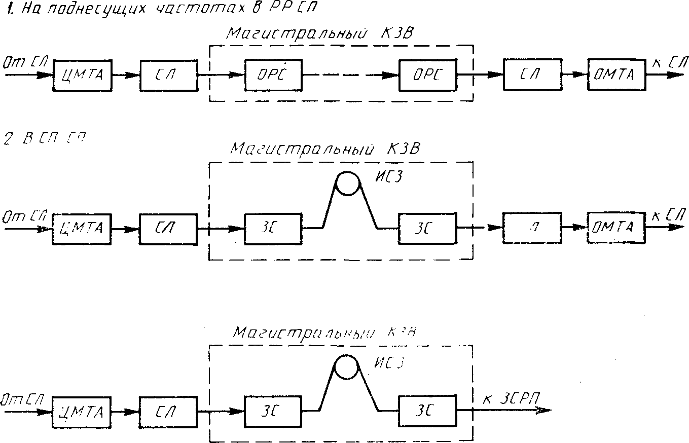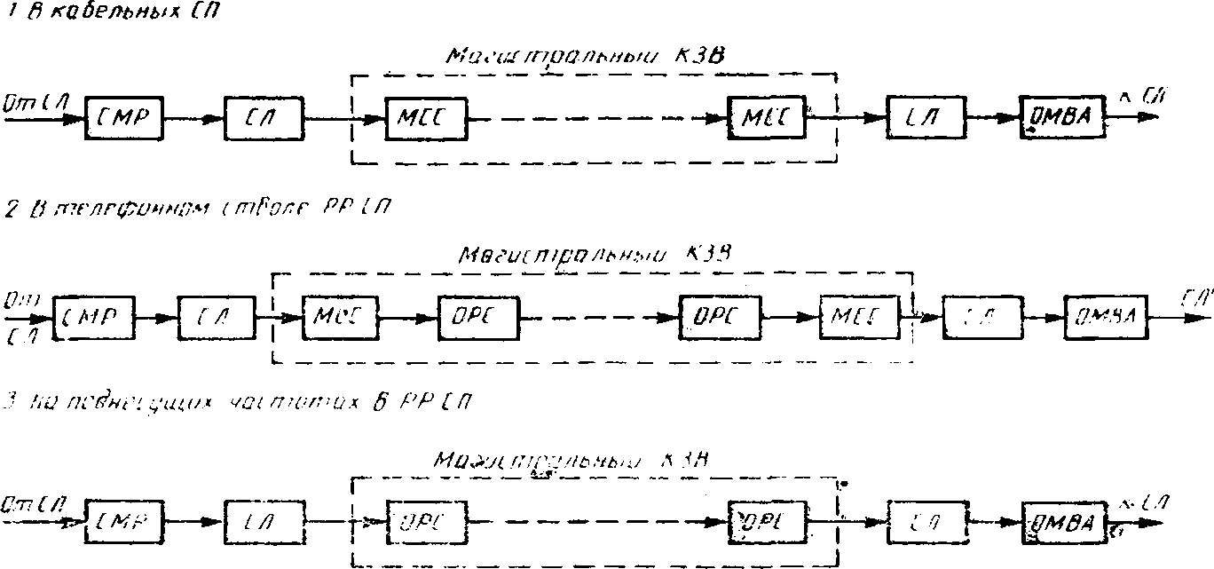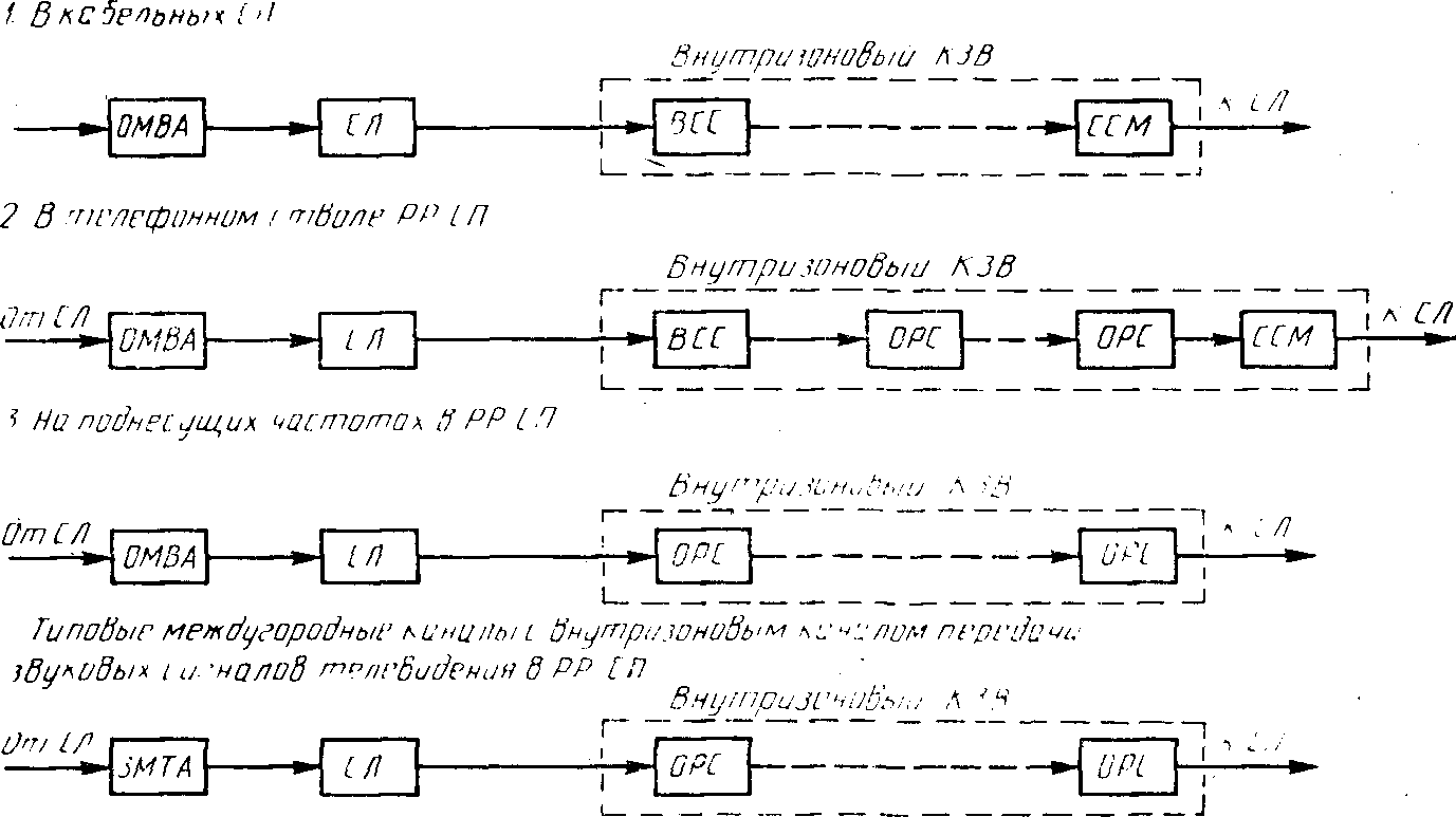 <*> При установке аппаратуры образования каналов звукового вещания непосредственно в оконечных междугородных вещательных аппаратных (ОМВА) или службы междугородного радиовещания (СМР) отличий в структурах МКЗВ и КЗВ не будет.