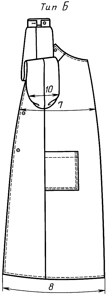 2.3.3. Халаты из тканей со специальными защитными пропитками должны быть изготовлены с воротником, потайной застежкой, длинными рукавами, регулирующимися по ширине внизу, клапанами на карманах.