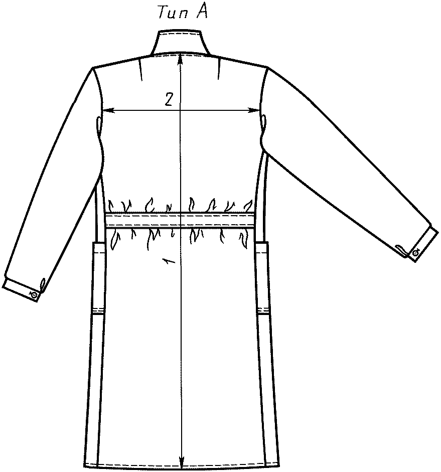 1.3. Измерения готовых халатов типов А и Б должны соответствовать указанным на