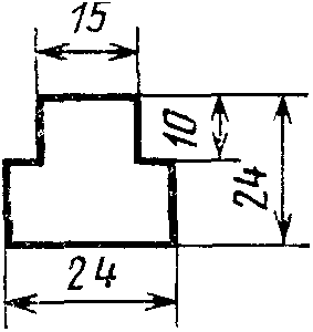 1.2. Из каждого квадрата вырезают по пять элементарных проб Т-образной формы в продольном и поперечном направлениях так, чтобы каждая последующая элементарная проба не являлась продолжением предыдущей. Посередине каждой элементарной пробы указывают продольное направление полотна. Размеры элементарной пробы должны соответствовать размерам, указанным на