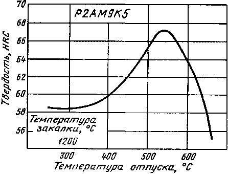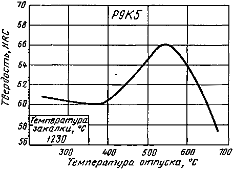 Р9К5 | Пониженная | Повышенное | Пониженная | 630 | Пониженная склонность к перегреву при закалке | Для обработки нержавеющих сталей и жаропрочных сплавов, а также сталей повышенной твердости |