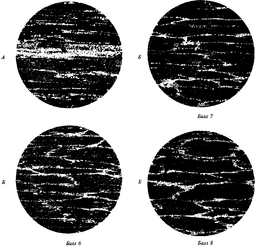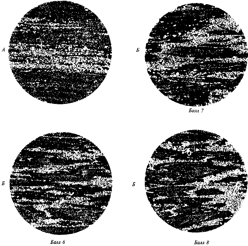 Примечание. За полосу принимается скопление карбидов, длина которого больше или равна 5-кратной ширине. Две рядом лежащие полосы принимаются за одну, если расстояние между ними меньше ширины более узкой полосы.