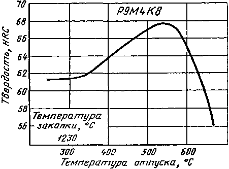 Р9М4К8 | Пониженная | Повышенное | Пониженная | 630 | Повышенная склонность к обезуглероживанию | Для различных инструментов при обработке высокопрочных, жаропрочных и нержавеющих сталей и сплавов, а также улучшенных легированных сталей |