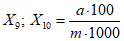 Массовую долю окиси натрия (X9) или окиси калия (X10) в процентах вычисляют по формуле