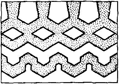 Дорожный рисунок протектора Дорожный рисунок D. Strassenprofil E. Highway tread pattern F. Dessin de route | Рисунок протектора покрышки, состоящий из шашек или ребер, разделенных канавками | |