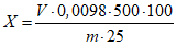где V - объем раствора азотнокислой ртути концентрации точно 0,025 моль/дм3, израсходованный на титрование анализируемого раствора, см3;