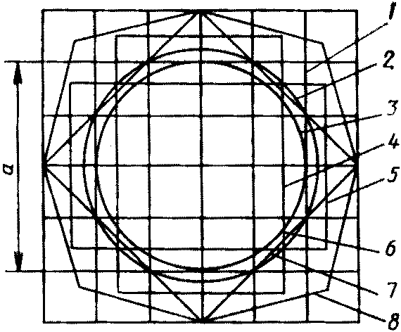 квадрата 1; 7 - квадрат, образованный отрезками, проходящими