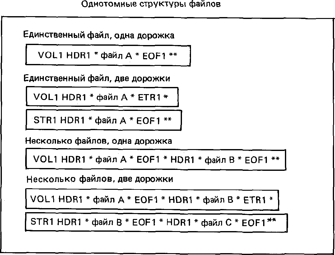 Различные конфигурации файлов, которые могут быть созданы в этом случае, представлены на черт. 9. Каждая рамка представляет собой дорожку.