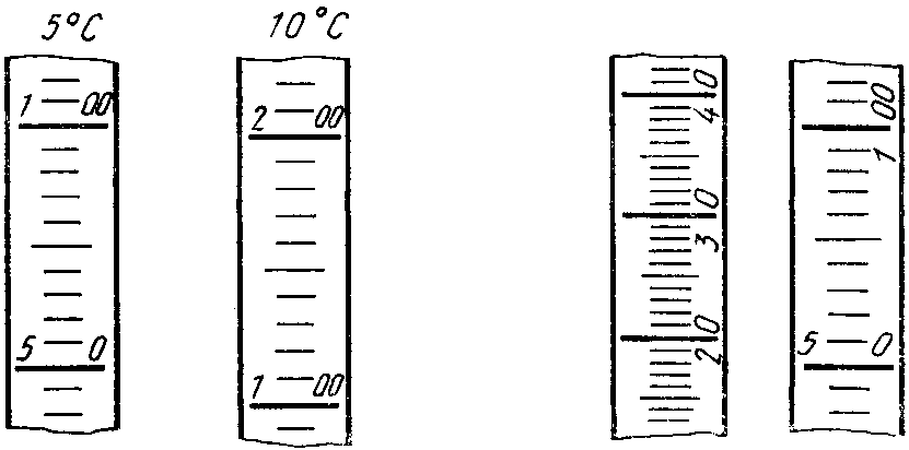 ВАРИАНТЫ ЧИСЛОВЫХ ОТМЕТОК ШКАЛ ТЕРМОМЕТРОВ