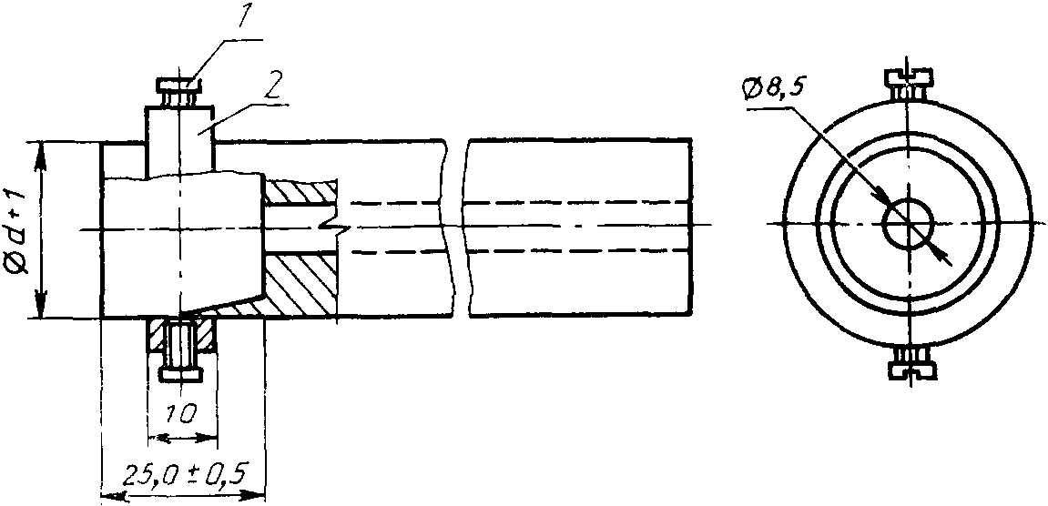 1.2. Для определения прочности связи резинового основания вентилей с металлическим основанием типов ГК и ТК резиновое основание вентиля разрезают ножом вручную или штанцевым ножом на сверлильном станке по окружности корпуса вентиля до плоскости его основания в соответствии с черт. 1.