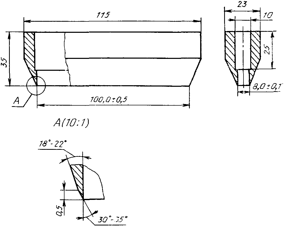 Схема и основные размеры штанцевого ножа для заготовки образцов приведены в