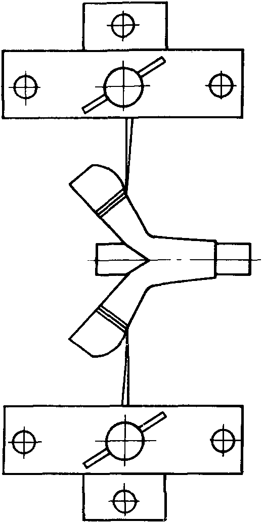 Свободные части петель закрепляют в зажимах разрывной машины.