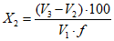 Объемную долю кислорода (X2) в процентах вычисляют по формуле