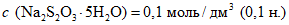 - объем раствора 5-водного серноватистокислого натрия концентрации точно 0,1 моль/дм3, израсходованный на титрование контрольного раствора, см3;