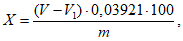 Массовую долю двойной сернокислой соли закиси железа и аммония (X) в процентах вычисляют по формуле